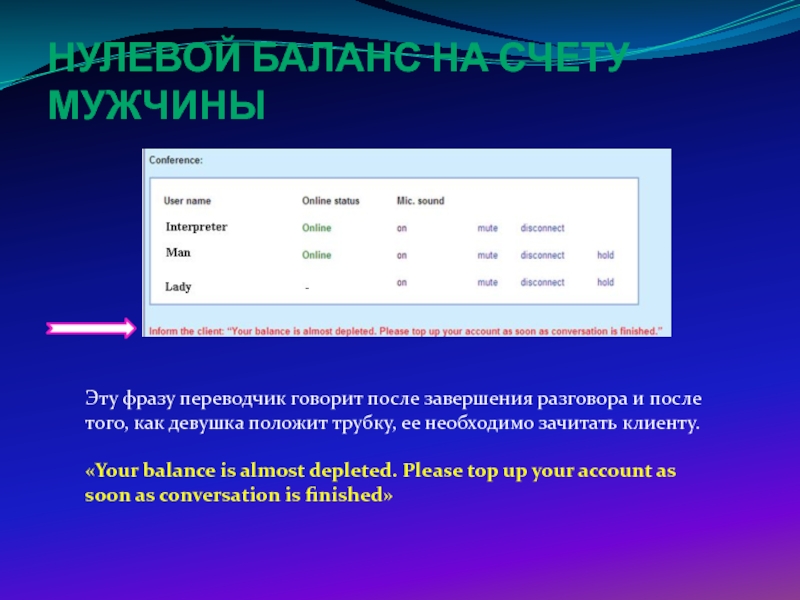 Слайд 20НУЛЕВОЙ БАЛАНС НА СЧЕТУ МУЖЧИНЫ