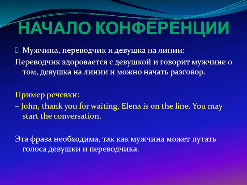 Эта фраза необходима, так как мужчина может путать голоса девушки и переводчика.