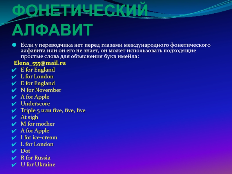 Слайд 19ФОНЕТИЧЕСКИЙ АЛФАВИТ