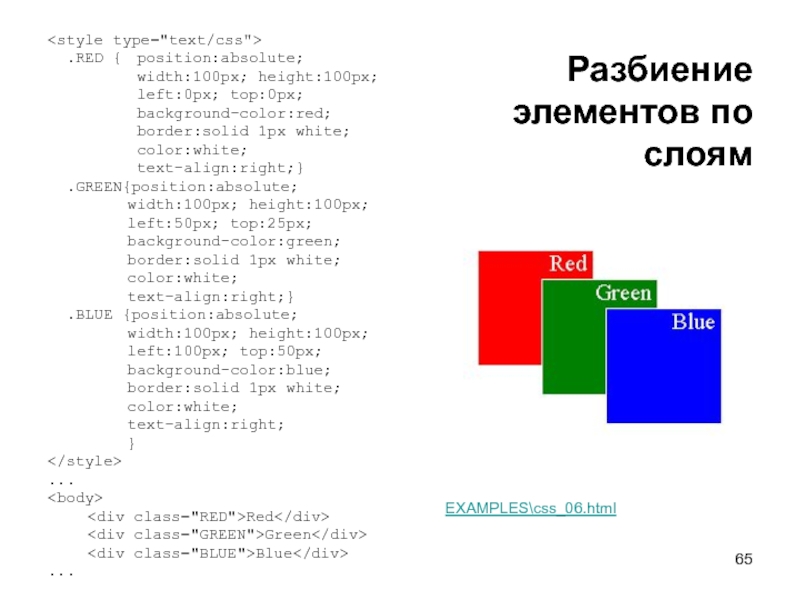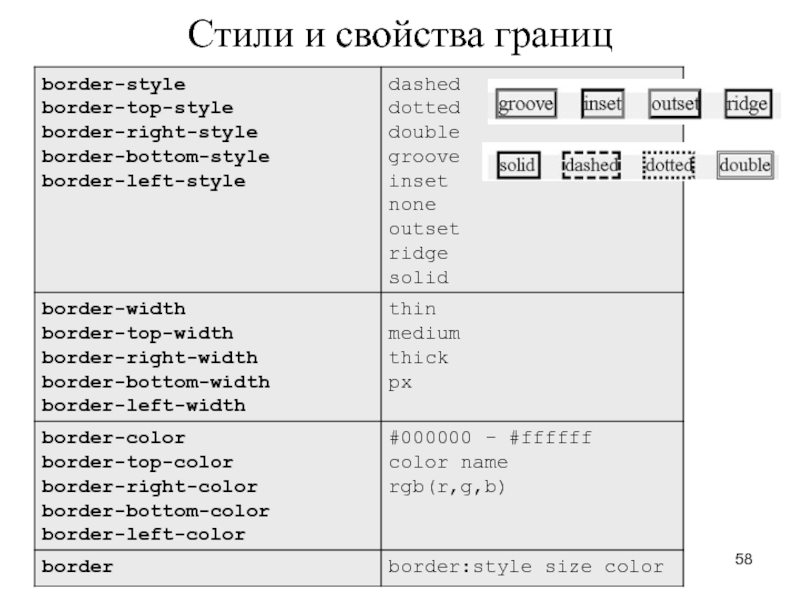 текста - для задания интервала между буквами и словами, высоты строк, горизонтального и вертикального интервала и абзацных отступов; стили цвета - для задания цвета фона и переднего плана; стили рамок - для вывода различных рамок, окружающих текстовые и графические элементы; стили отступов - для задания ширины различных отступов, окружающих текстовые и графические элементы; стили фильтрации - для применения специальных эффектов к текстовым и графическим элементам; стили задания размера - для задания высоты и ширины текстовых и графических контейнеров; стили позиционирования - для позиционирования элементов страницы в фиксированных пиксельных координатах на странице.