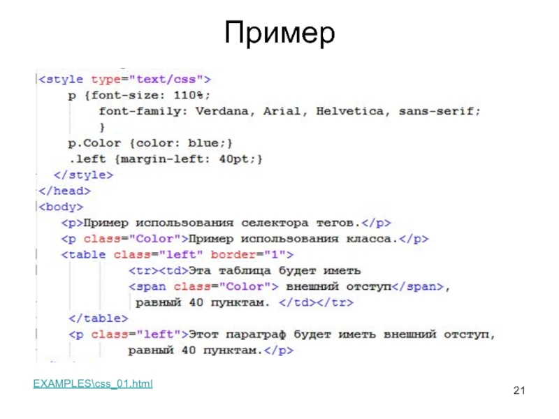 вид всего Web-сайта, изменяя один файл. Каждая страница должна соединяться с таблицей стилей с помощью тега (в разделе заголовка )