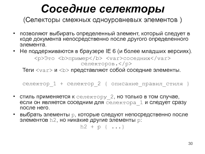 Слайд 30Соседние селекторы