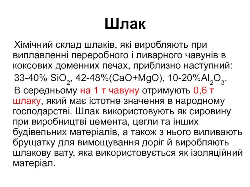 Хімічний склад шлаків, які виробляють при виплавленні переробного і