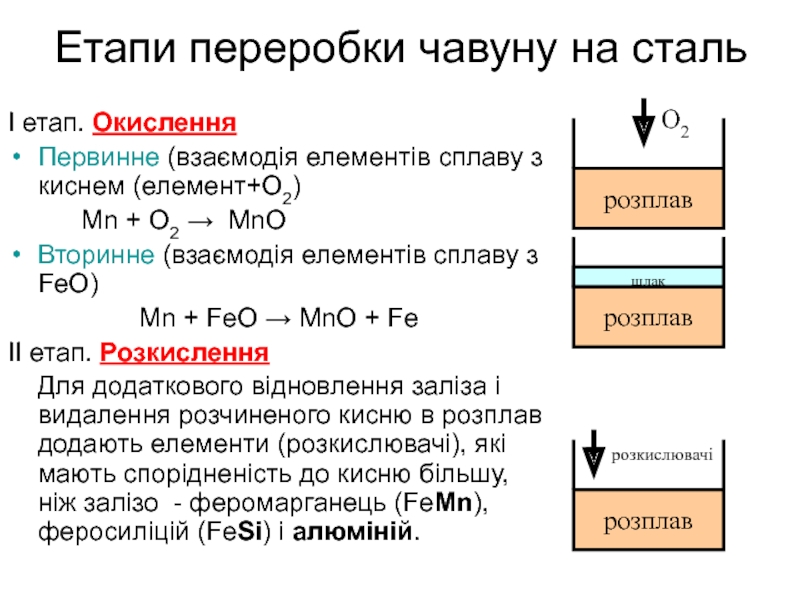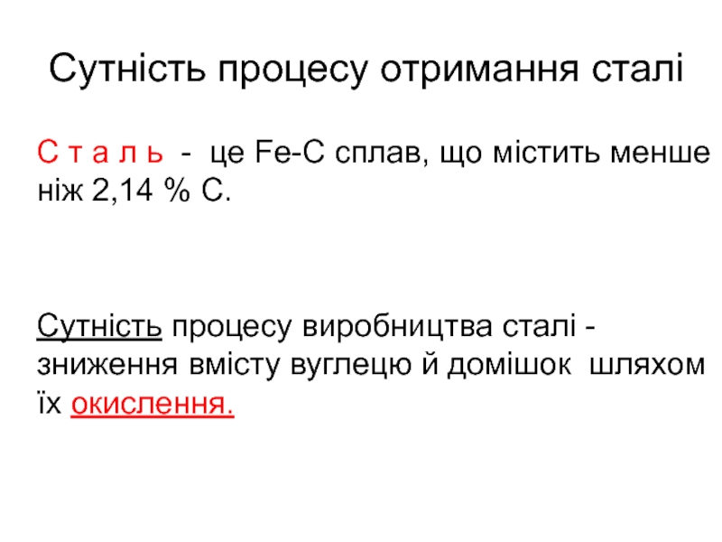 Сутність процесу виробництва сталі - зниження вмісту вуглецю й домішок шляхом їх окислення.