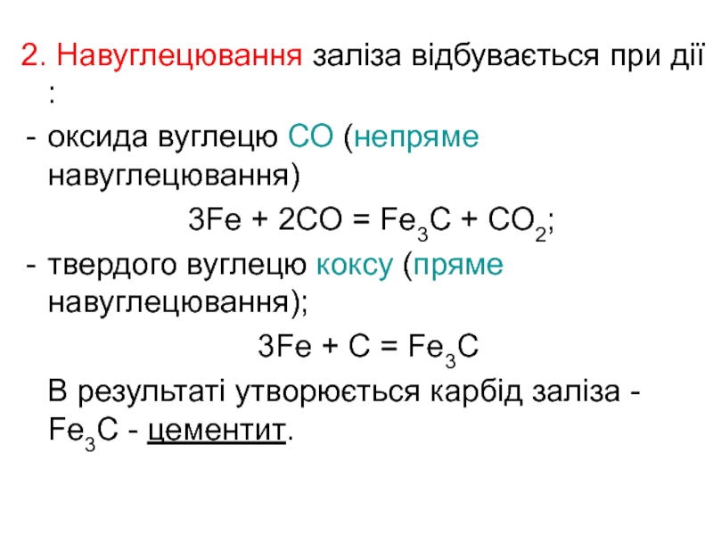 Слайд 272. Навуглецювання заліза відбувається при дії :