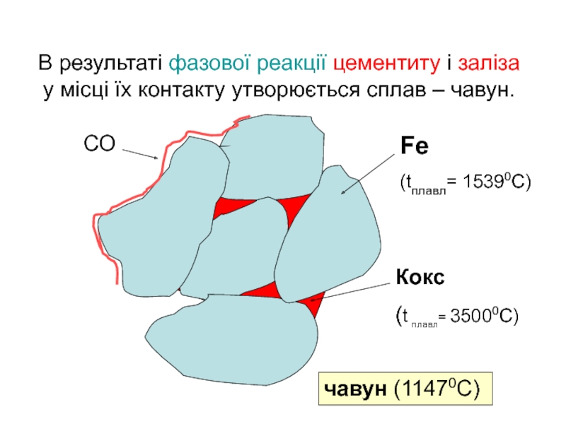 Слайд 28В результаті фазової реакції цементиту і заліза у місці їх контакту