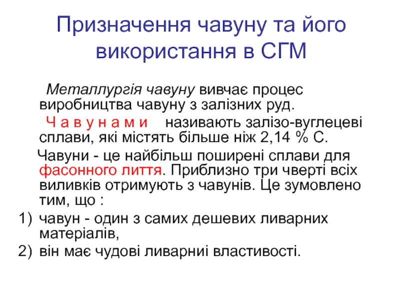 Чавуни - це найбільш поширені сплави для фасонного лиття. Приблизно три чверті всіх виливків отримують з чавунів. Це зумовлено тим, що :