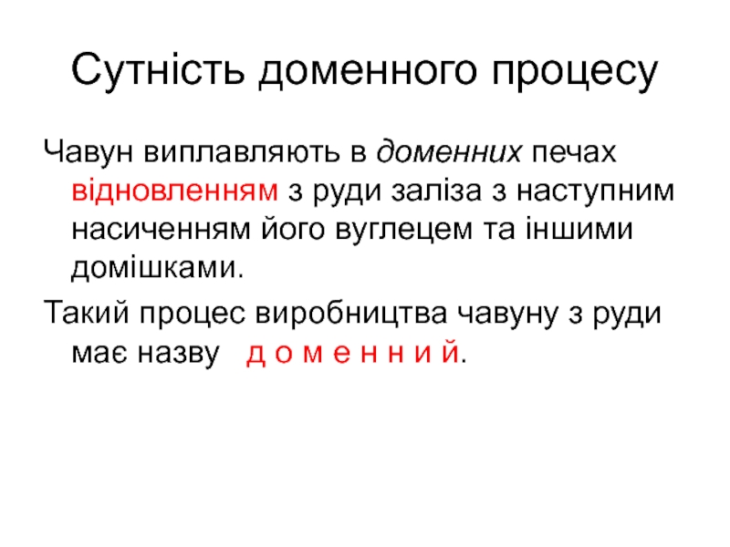 Такий процес виробництва чавуну з руди має назву д о м е н н и й.