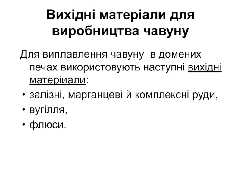 Слайд 9Вихідні матеріали для виробництва чавуну