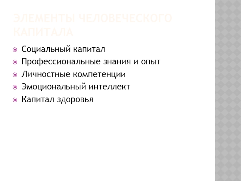 Слайд 11ЭЛЕМЕНТЫ ЧЕЛОВЕЧЕСКОГО КАПИТАЛА