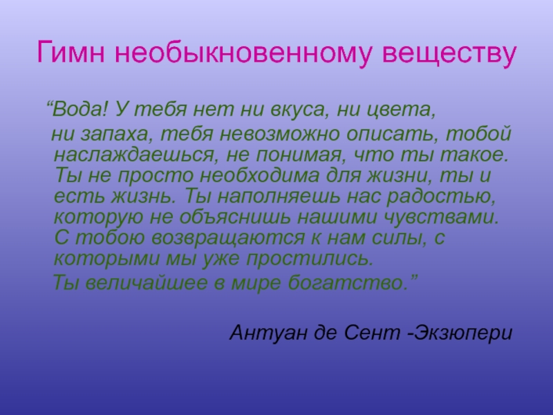 “Вода! У тебя нет ни вкуса, ни цвета,