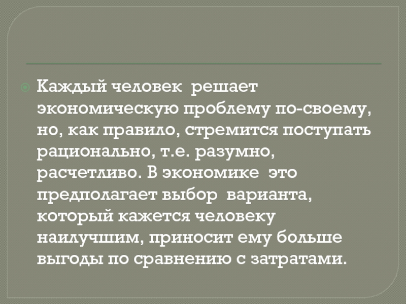 Каждый человек решает экономическую проблему по-своему, но, как правило, стремится поступать