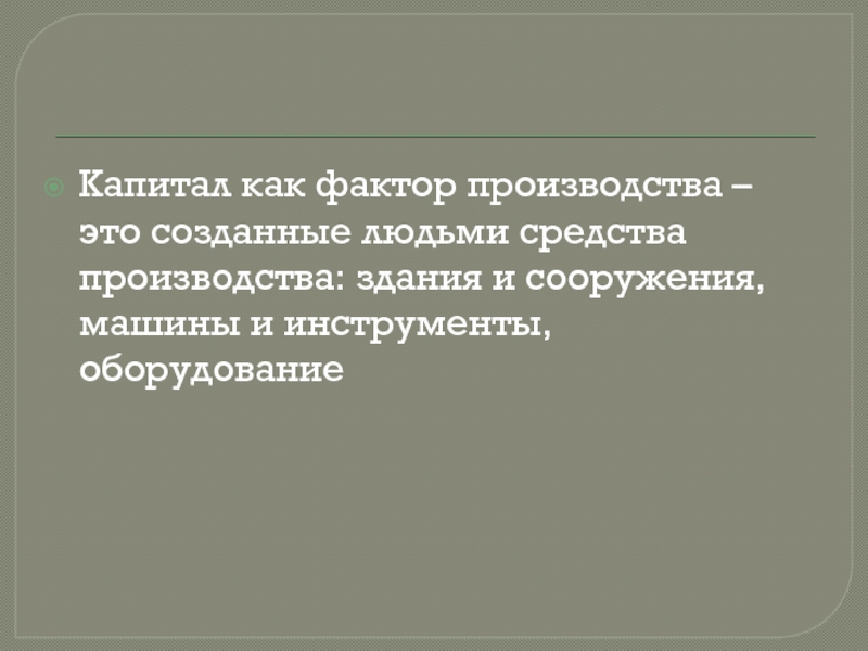 Капитал как фактор производства – это созданные людьми средства производства: здания