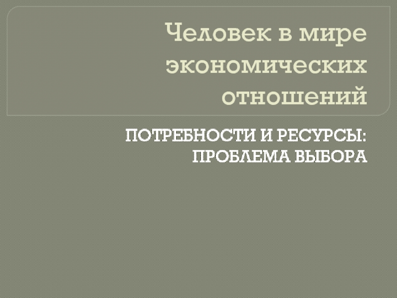 ПОТРЕБНОСТИ И РЕСУРСЫ:ПРОБЛЕМА ВЫБОРА