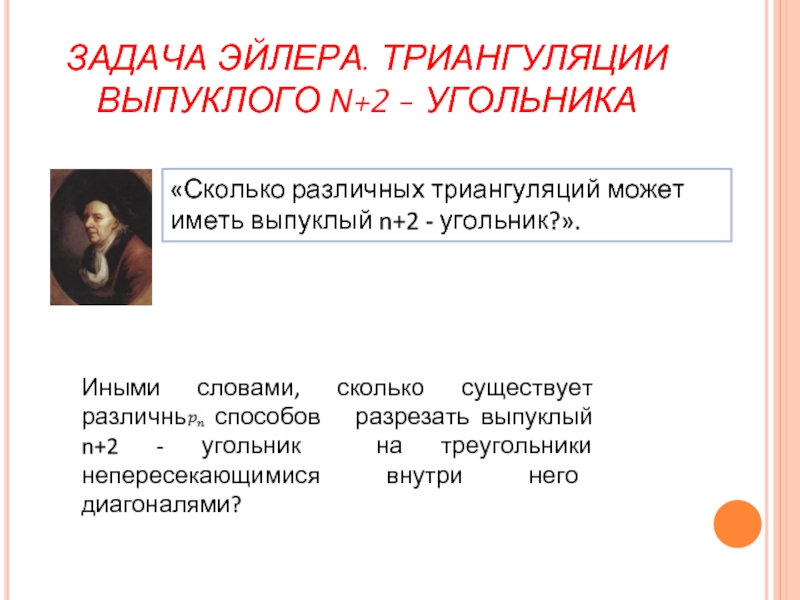 Слайд 6ЗАДАЧА ЭЙЛЕРА. ТРИАНГУЛЯЦИИ ВЫПУКЛОГО N+2 - УГОЛЬНИКА
