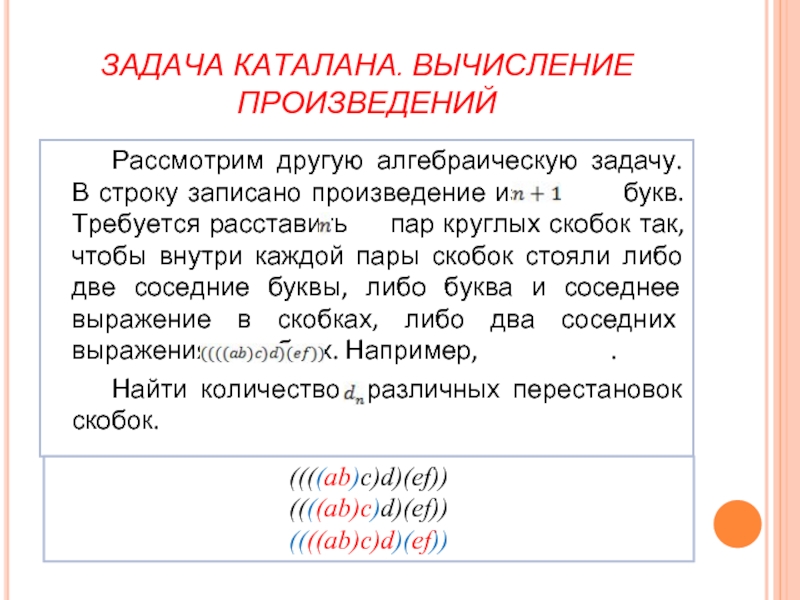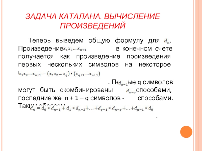 Слайд 8ЗАДАЧА КАТАЛАНА. ВЫЧИСЛЕНИЕ ПРОИЗВЕДЕНИЙ