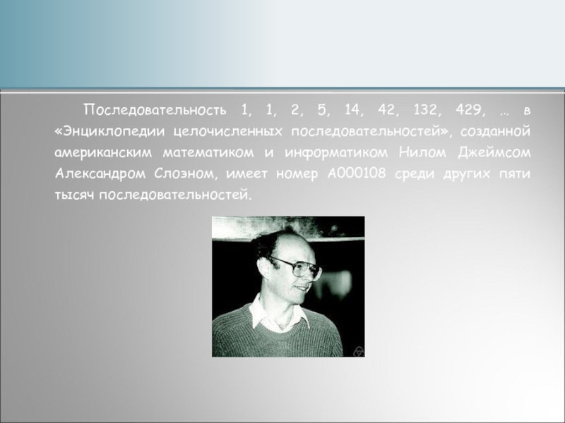 Слайд 2Последовательность 1, 1, 2, 5, 14, 42, 132, 429, … в