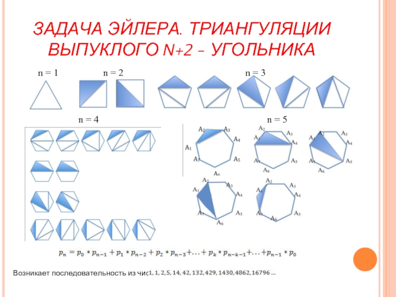 Слайд 7ЗАДАЧА ЭЙЛЕРА. ТРИАНГУЛЯЦИИ ВЫПУКЛОГО N+2 - УГОЛЬНИКА