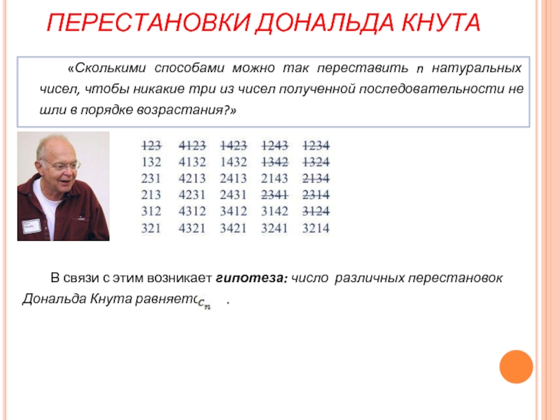 Слайд 20ПЕРЕСТАНОВКИ ДОНАЛЬДА КНУТА