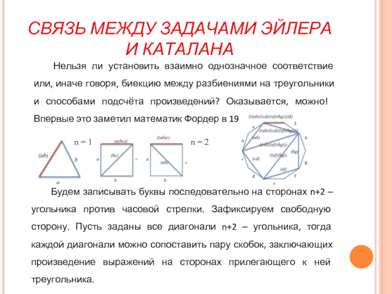 Слайд 12СВЯЗЬ МЕЖДУ ЗАДАЧАМИ ЭЙЛЕРА И КАТАЛАНА