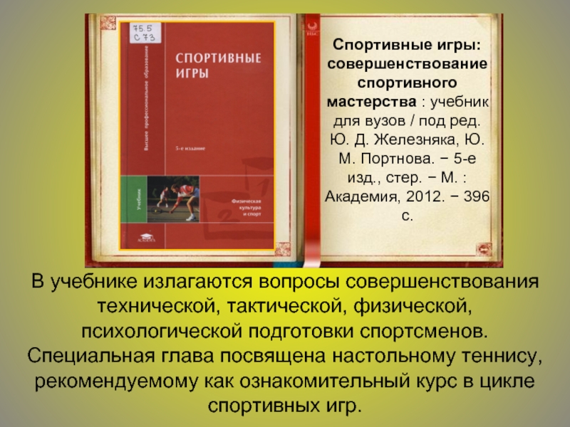 Спортивные игры: совершенствование спортивного мастерства : учебник для вузов / под ред. Ю. Д. Железняка, Ю. М. Портнова. − 5-е изд., стер. − М. : Академия, 2012. − 396 c.
