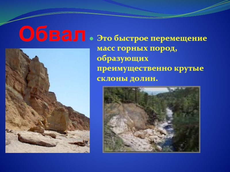 Это быстрое перемещение масс горных пород, образующих преимущественно крутые склоны