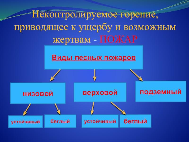 Слайд 13Неконтролируемое горение, приводящее к ущербу и возможным жертвам - ПОЖАР