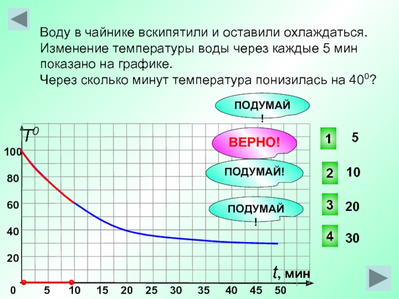 Через сколько минут температура понизилась на 400?
