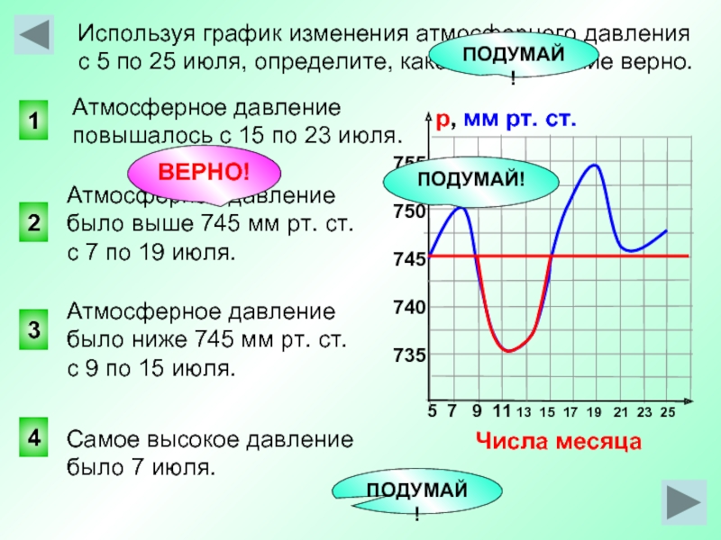 Используя график изменения атмосферного давления