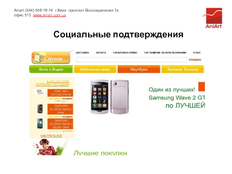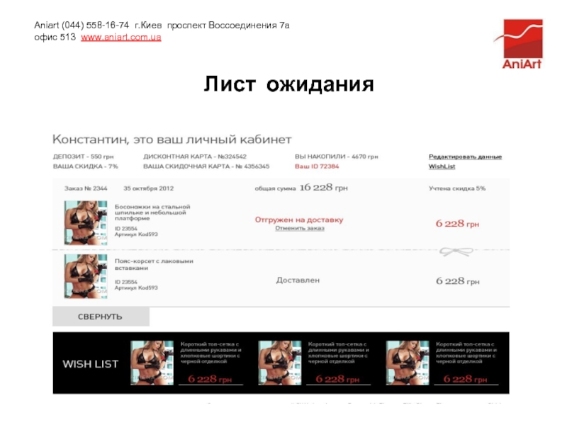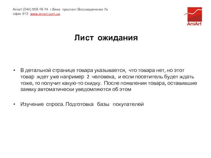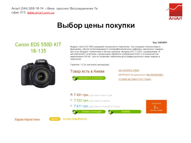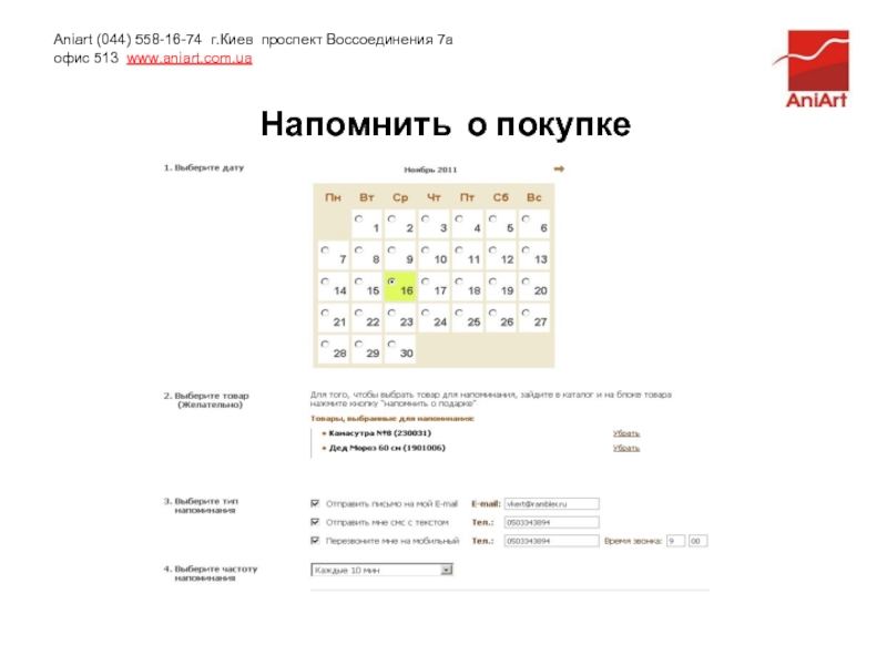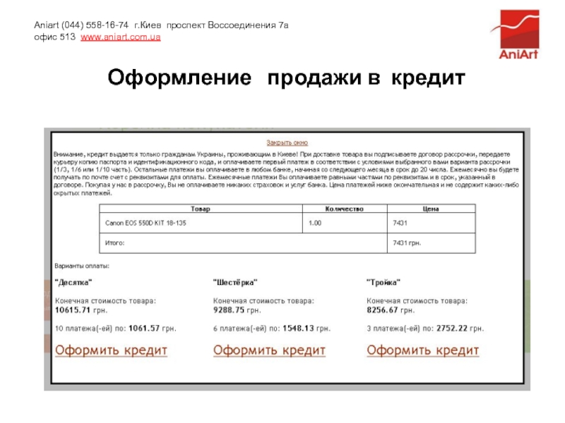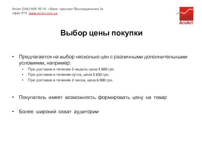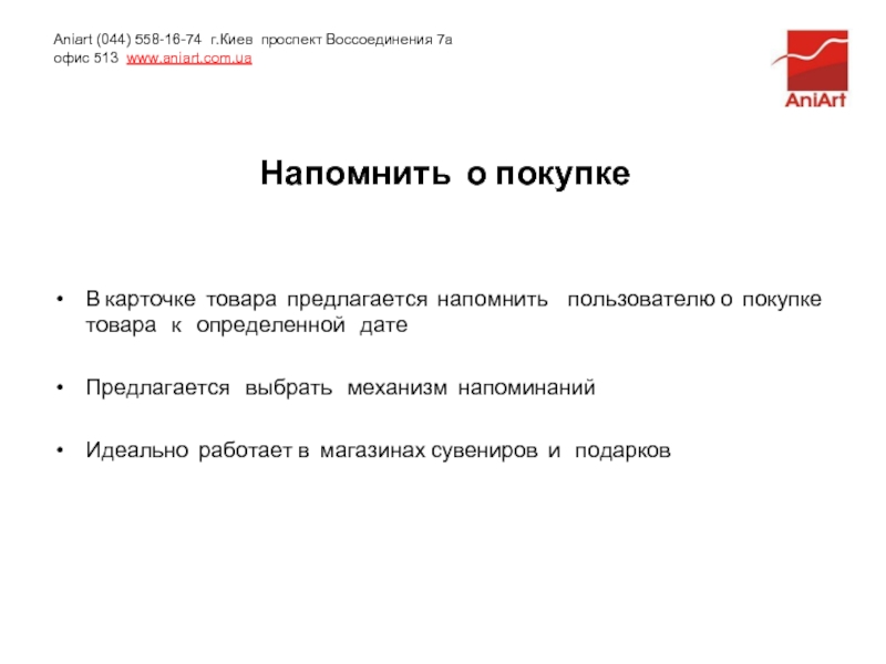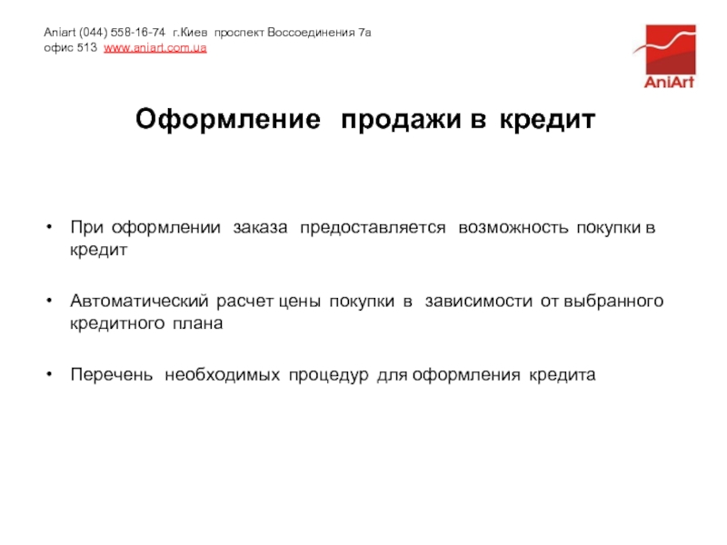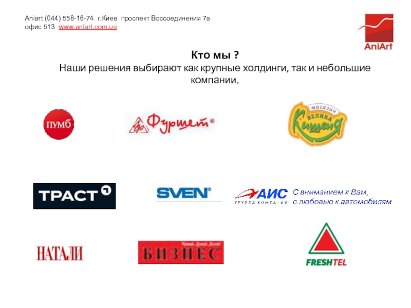 Aniart (044) 558-16-74 г.Киев проспект Воссоединения 7а офис 513 www.aniart.com.ua
