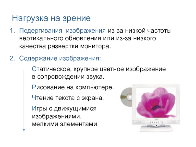 Но взаимодействие собственных полей монитора и внешних электромагнитных полей может вызывать интерференцию, из-за которой изображение на экране начинает мерцать, вызывая ухудшение зрения и головную боль.