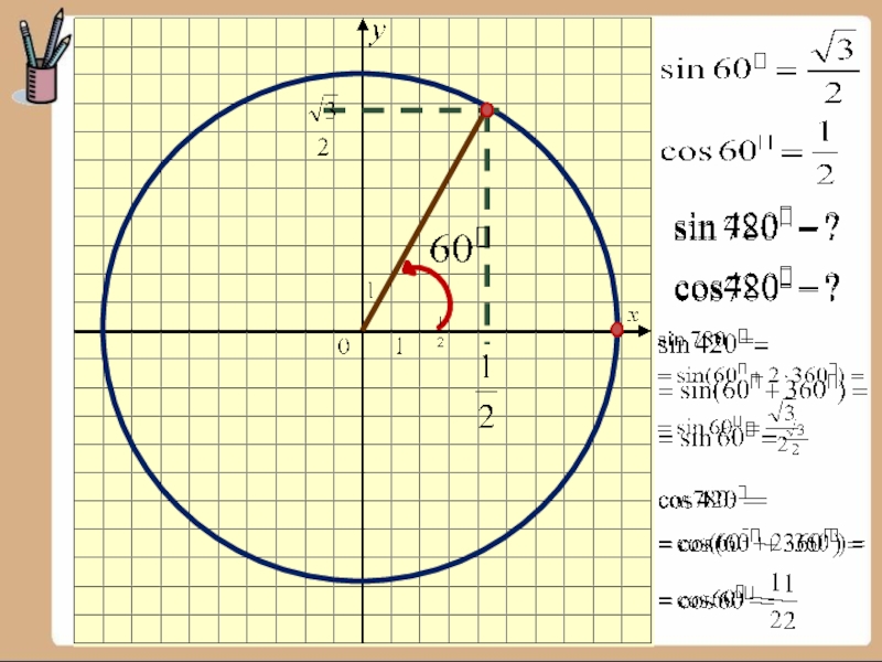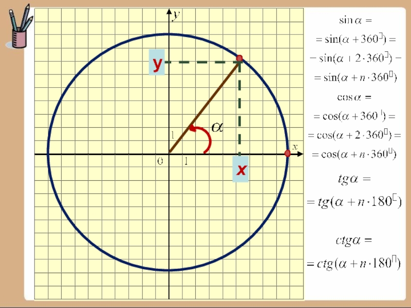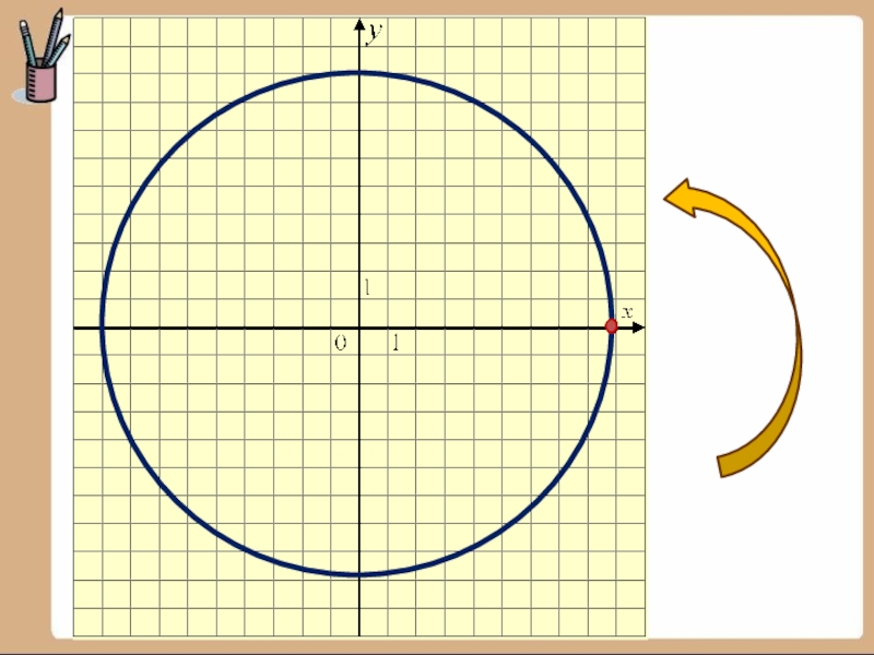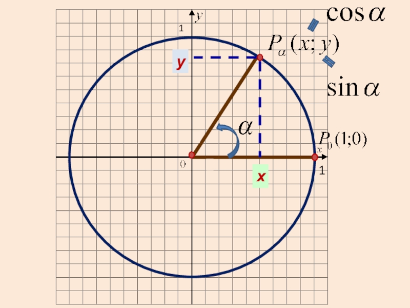 Слайд 12Рассмотрим в прямоугольной системе координат окружность единичного радиуса и отложим от