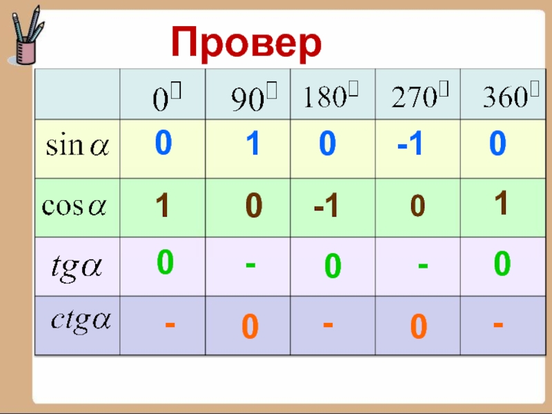 Слайд 21Знаки синуса, косинуса, тангенса, котангенса