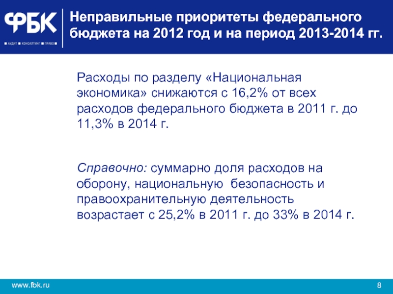 Справочно: суммарно доля расходов на оборону, национальную безопасность и правоохранительную деятельность возрастает с 25,2% в 2011 г. до 33% в 2014 г.