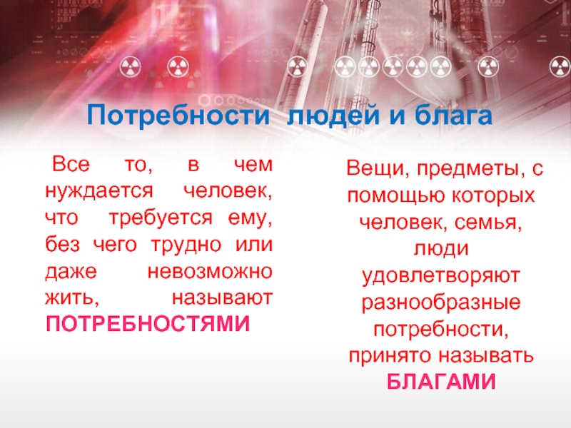 Вещи, предметы, с помощью которых человек, семья, люди удовлетворяют разнообразные потребности, принято называть БЛАГАМИ