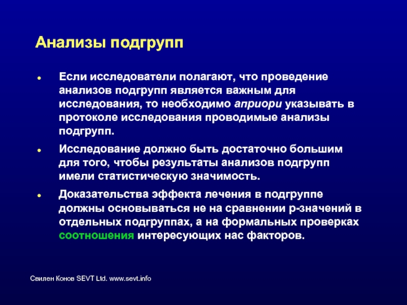 исследования, то необходимо априори указывать в протоколе исследования проводимые анализы подгрупп.