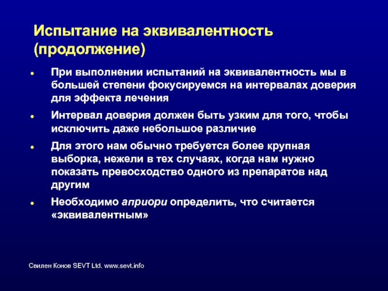 В исследованиях, которые должны показать эквивалентность, делаются другие акценты по сравнению с испытаниями на превосходство