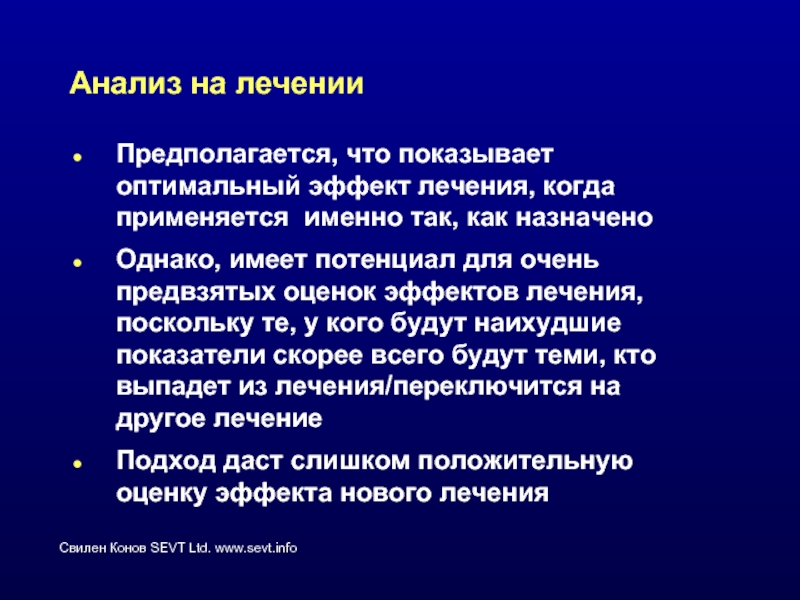 Зачастую исследователи стремятся провести анализ эффекта схемы терапии в анализируемых