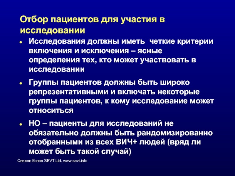 Исследователи в прошлом выставляли больше ограничений в выборе пациентов для исследования, нежели при лечении пациентов, то есть, выбирали лучших по сравнению с их обычной клинической практикой