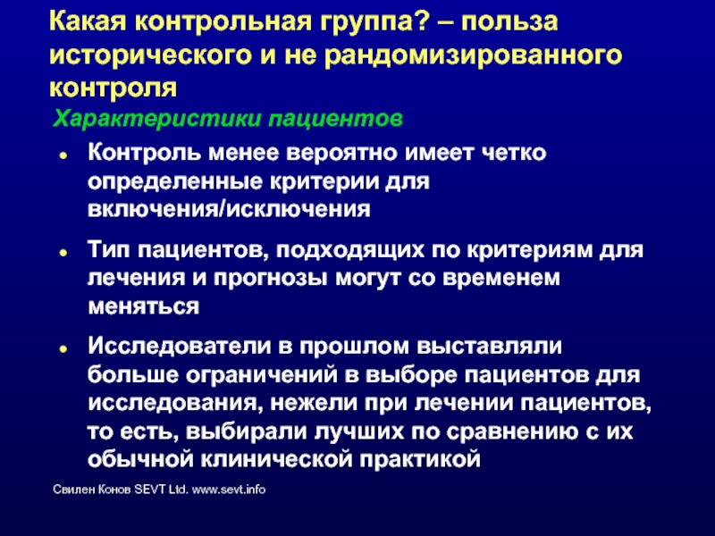 Слайд 8Какая контрольная группа? – польза исторического и не рандомизированного контроля