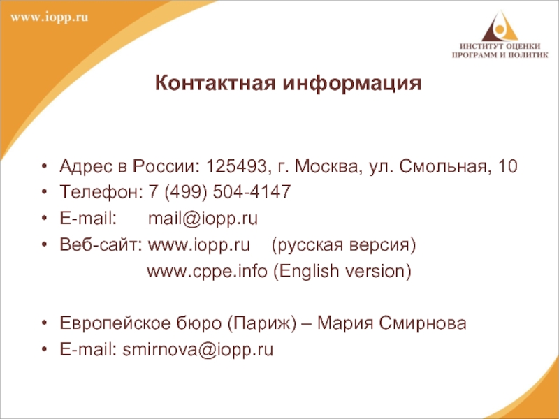 Если не удалось найти и скачать презентацию, Вы можете заказать его на нашем сайте. Мы постараемся найти нужный Вам материал и отправим по электронной почте. Не стесняйтесь обращаться к нам, если у вас возникли вопросы или пожелания: