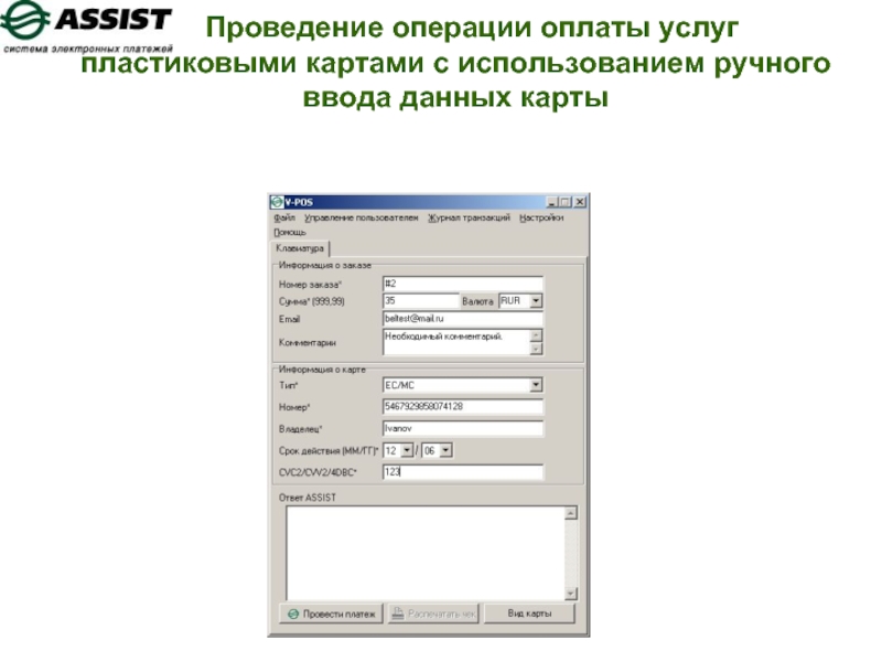 Слайд 20 Проведение операции оплаты услуг пластиковыми картами с использованием ручного