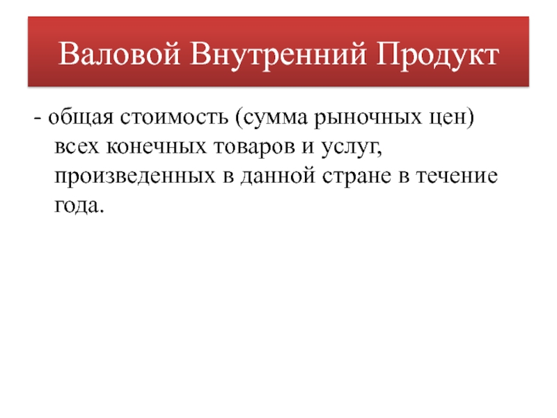 - общая стоимость (сумма рыночных цен) всех конечных товаров