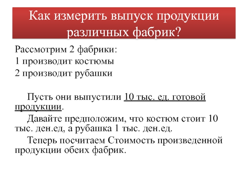 Слайд 2Как измерить выпуск продукции различных фабрик?