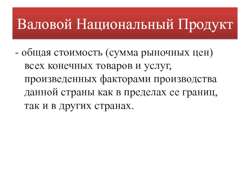 и услуг, произведенных факторами производства данной страны как в пределах ее границ, так и в других странах.