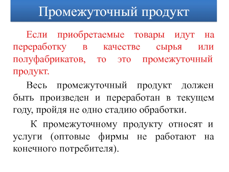 Весь промежуточный продукт должен быть произведен и переработан в текущем году, пройдя не одно стадию обработки.