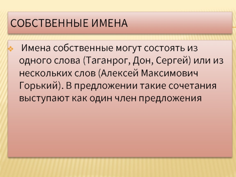 Сергей) или из нескольких слов (Алексей Максимович Горький). В предложении такие сочетания выступают как один член предложения