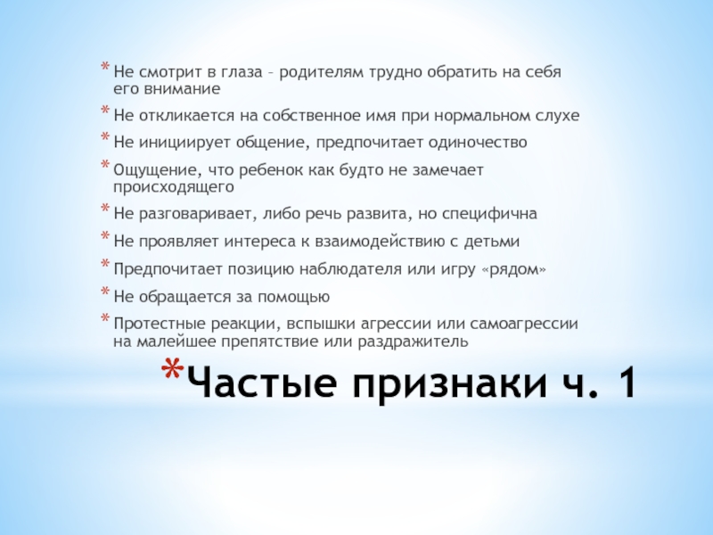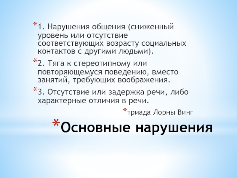 1. Нарушения общения (сниженный уровень или отсутствие соответствующих возрасту социальных