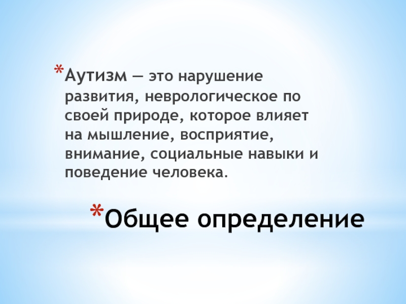 Аутизм — это нарушение развития, неврологическое по своей природе,