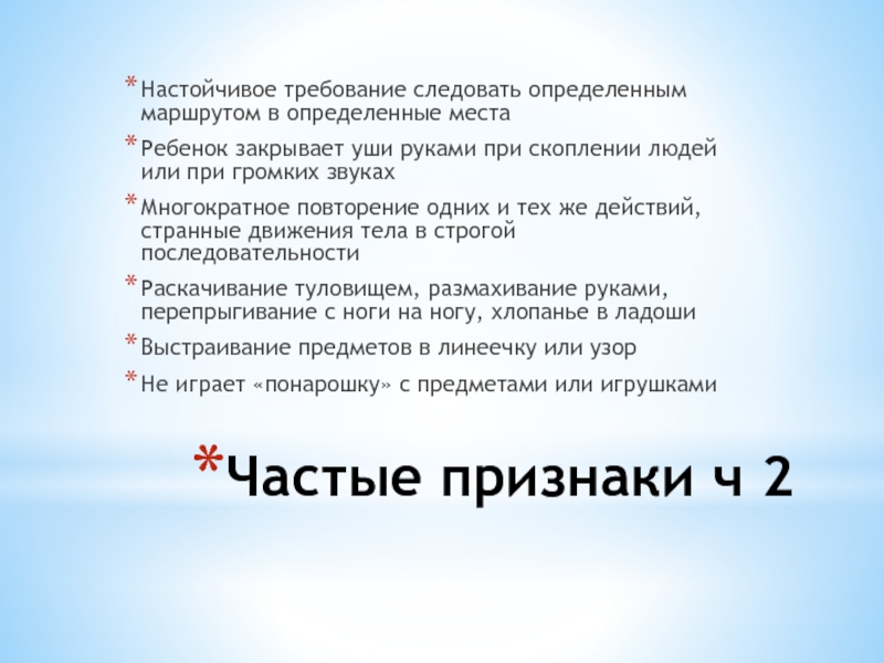 2. Тяга к стереотипному или повторяющемуся поведению, вместо занятий, требующих воображения.